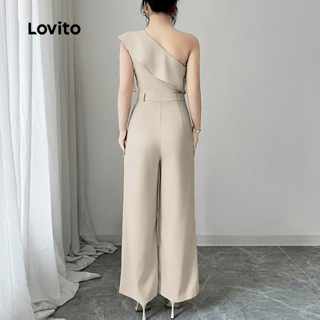 Lovito Macacão Elegante Assimétrico Babado Dupla Camada Macacão Khaki Claro para Mulheres. L171AD042
