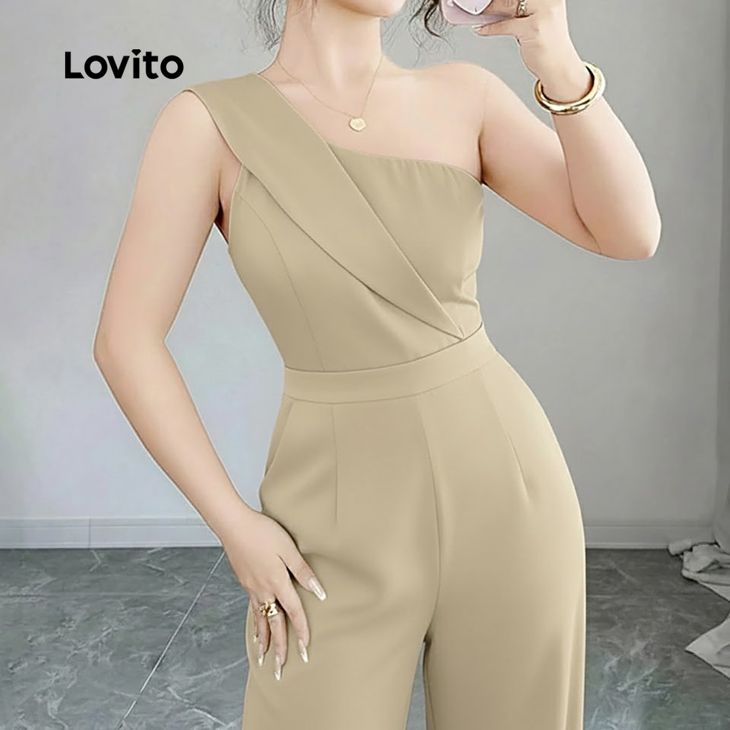 Lovito Macacão Elegante Assimétrico Primavera/verão Macacão Khaki para Mulheres L171ED572