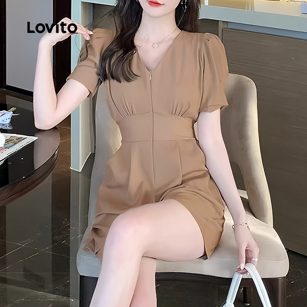 Lovito Macacão Elegante com Zíper Murmurado Na Primavera/verão Cor Cáqui para Mulheres L143ED340
