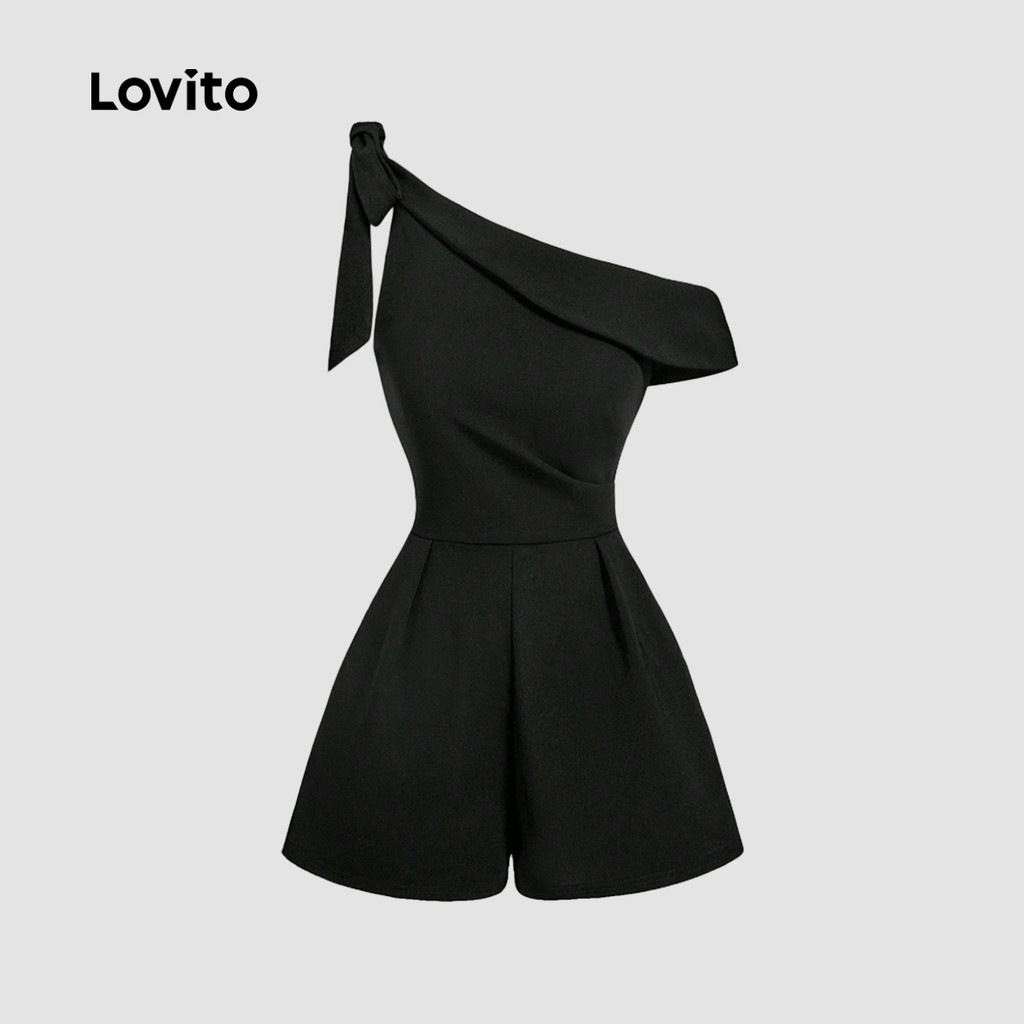 Lovito Macacão Elegante Ombros À Mostra Assimétrico com Laço Na Frente Primavera/verão Preto para Mulheres L155ED1440