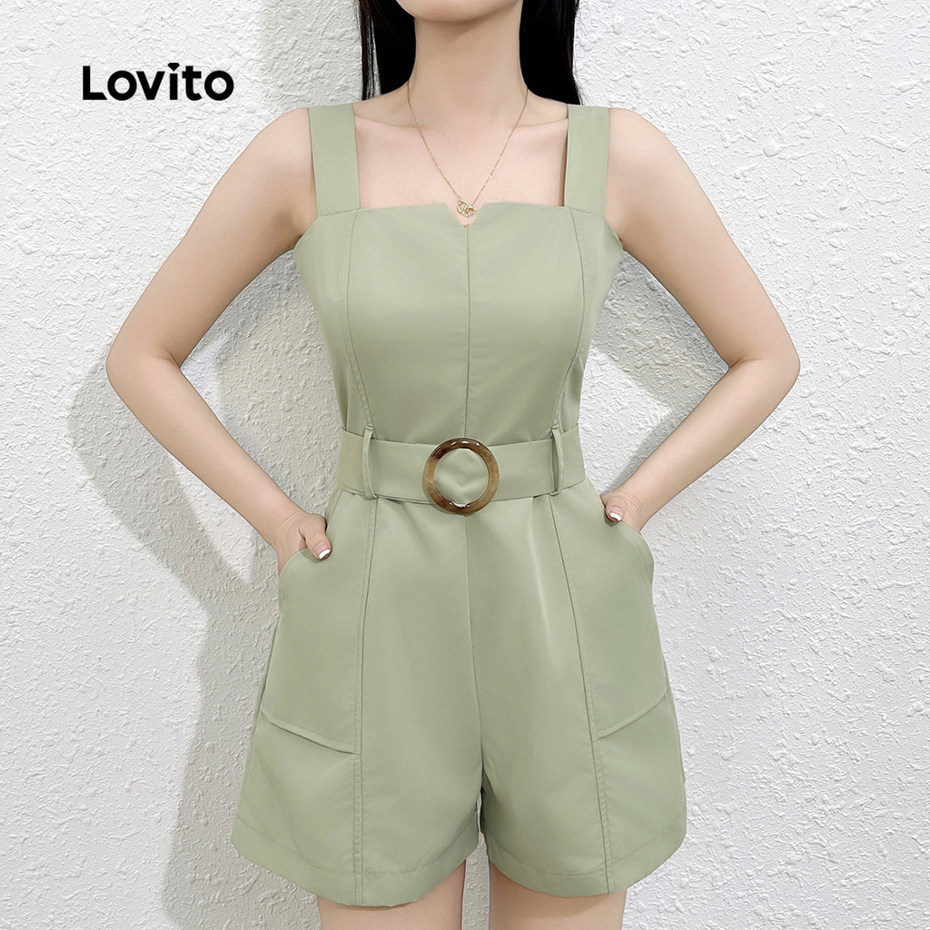 Lovito Macacão Feminino Casual Botão Simples L132ED315