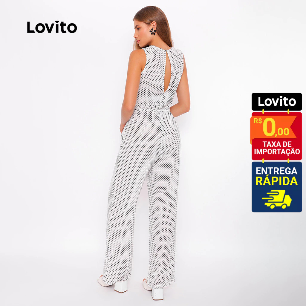 Lovito Macacão Feminino Elegante Estampa Poá LB379BRL408