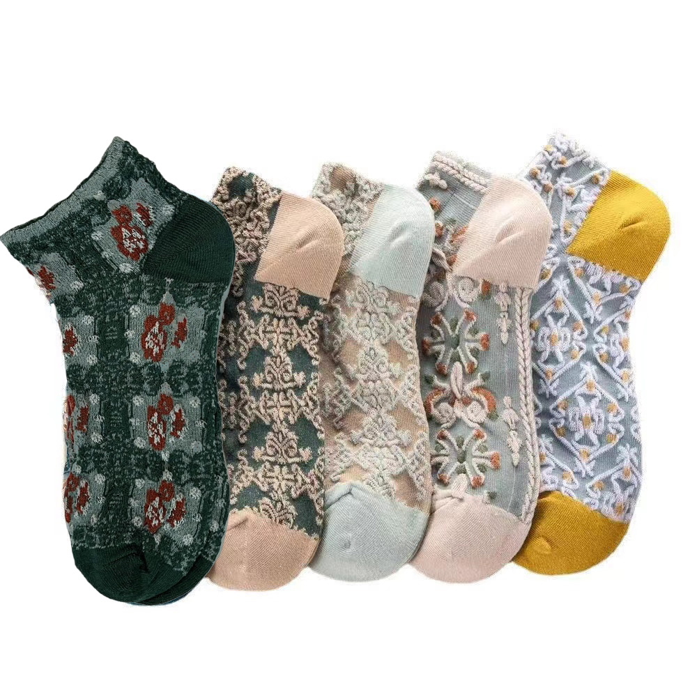🌟 Bem-vindo à nossa loja! Obrigado por escolher nossas elegantes meias vintage! Perfeito para adicionar um toque de realeza às suas roupas diárias, essas meias de tornozelo floral-embossed combinam conforto e estilo. Aproveite suas compras! 🌸 Detalhes do produto Mistura de algodão macia e respirável com conforto todo-dia. • Embalagem: 5 pares/conjunto (mistura de cores clássicas) – ótimo valor para uso diário ou presentear. Ocasiões: Ideal para mola/verão, emparelhamento com saias, vestidos, ou mocassins: Ideal para mola/verão, emparelhamento com saias, vestidos ou mocassins. O design leve é adequado para atividades internas/exteriores. Alvo: Mulheres que amam delicados, detalhes femininos e moda retrô. 📌 Lembretes amigáveis • As cores podem diferir ligeiramente devido às configurações da tela. Recomenda-se a lavagem das mãos para preservar o bordado. • Entre em contato conosco a qualquer momento para problemas – estamos felizes em ajudar!
