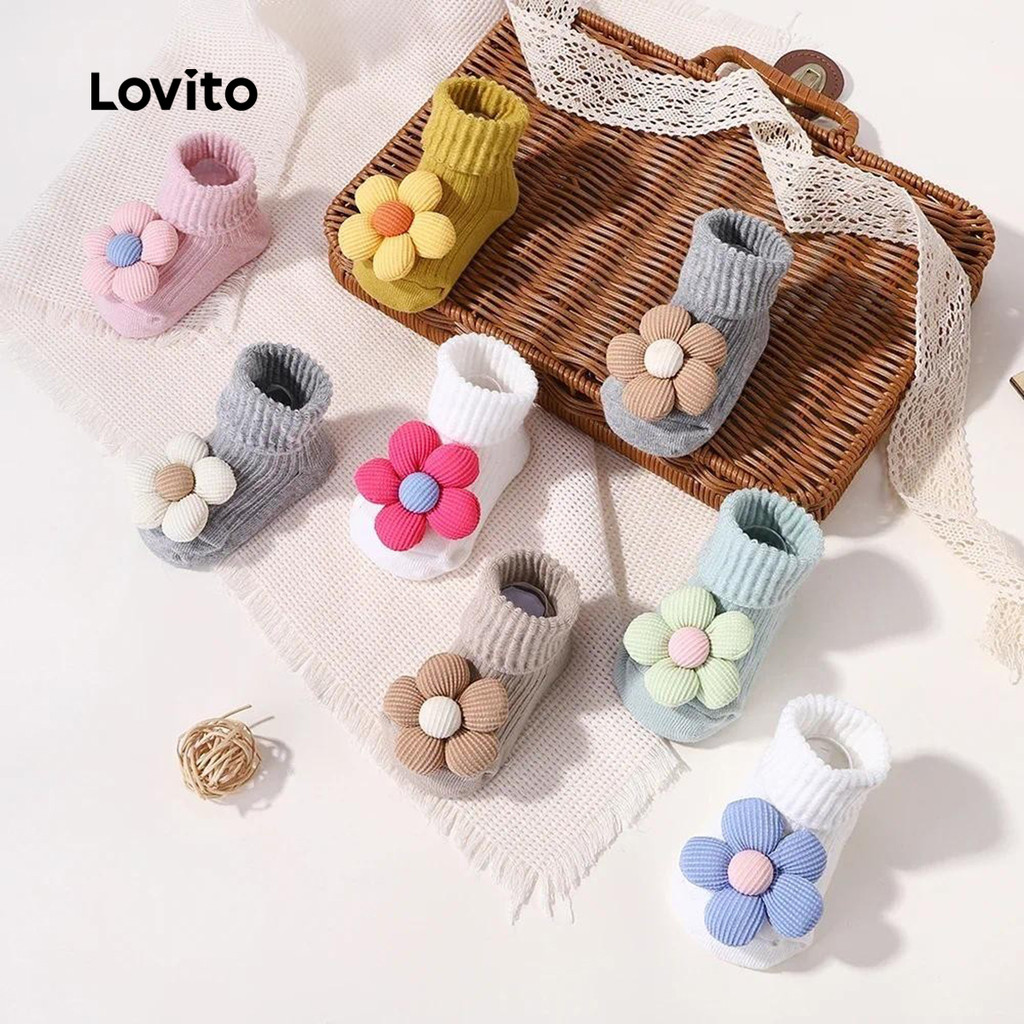 Lovito Meias Fofas Com Apliques Lisos Para Bebês E Crianças LCS099128