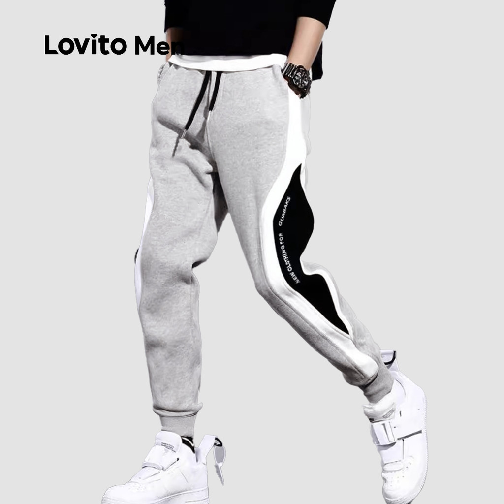 Lovito Men Calçado Casual Jogger com Blocos de Cor Cordão Bolso para Todas As Estações Cinza Jogger LNE118048