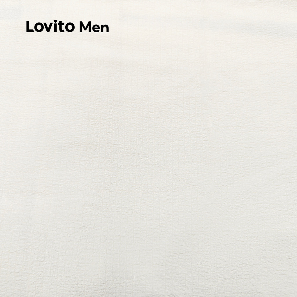 Lovito Men Camisa Casual de Botão com Frisos para Primavera/verão Cor Cáqui Claro para homens LNE118080