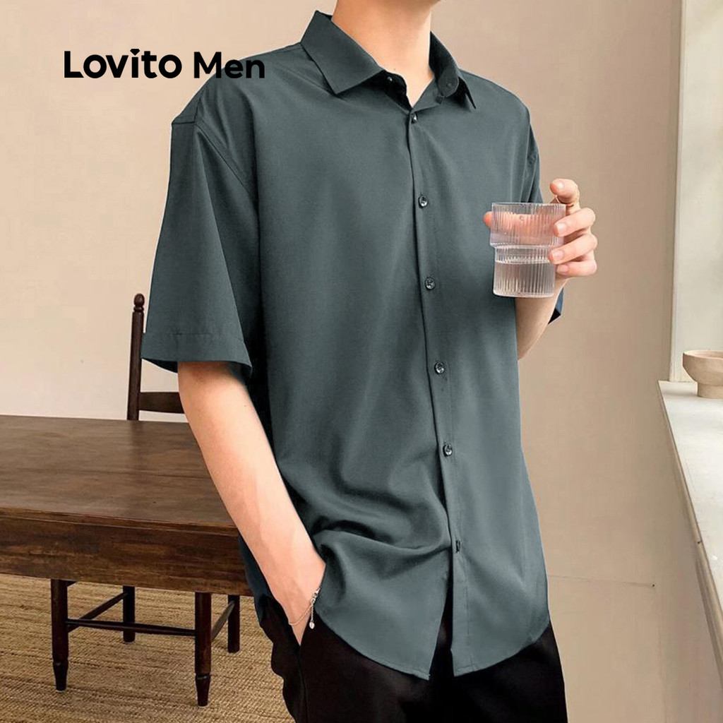 Lovito Men Camisa Elegante para Deslocamento com Botões Na Frente Primavera/verão Preta para homens LNE122148