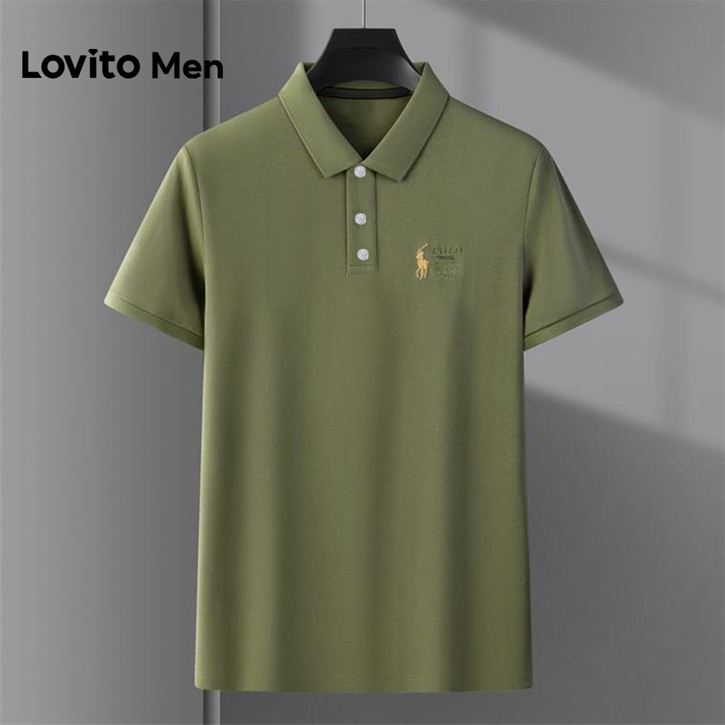 Lovito Men Camisa Polo Casual Bordada Primavera/verão Verde Camisa Polo para Homens LNE131066