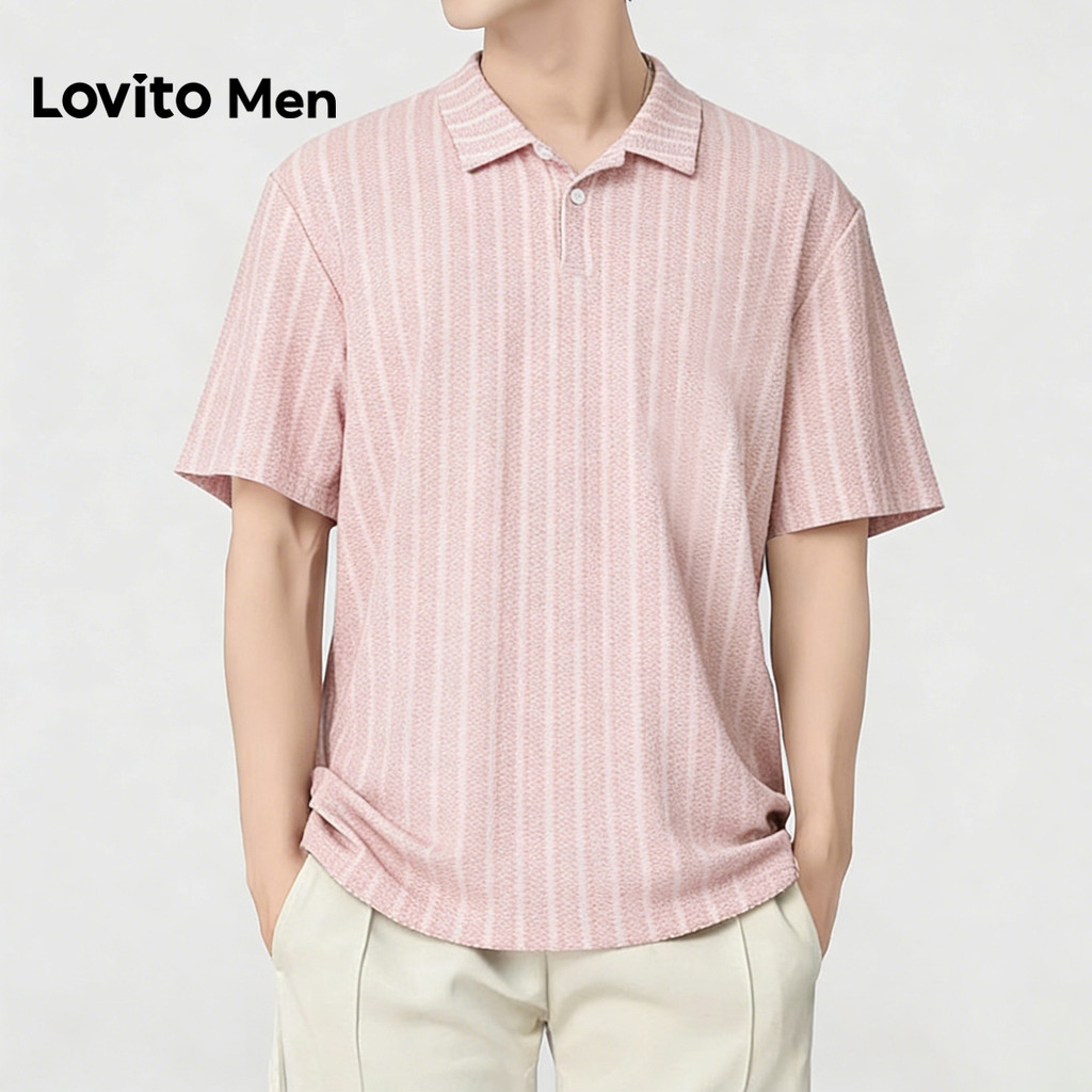 Lovito Men Camisa Polo Casual com Botão Primavera/verão Rosa para Homens L175ED105