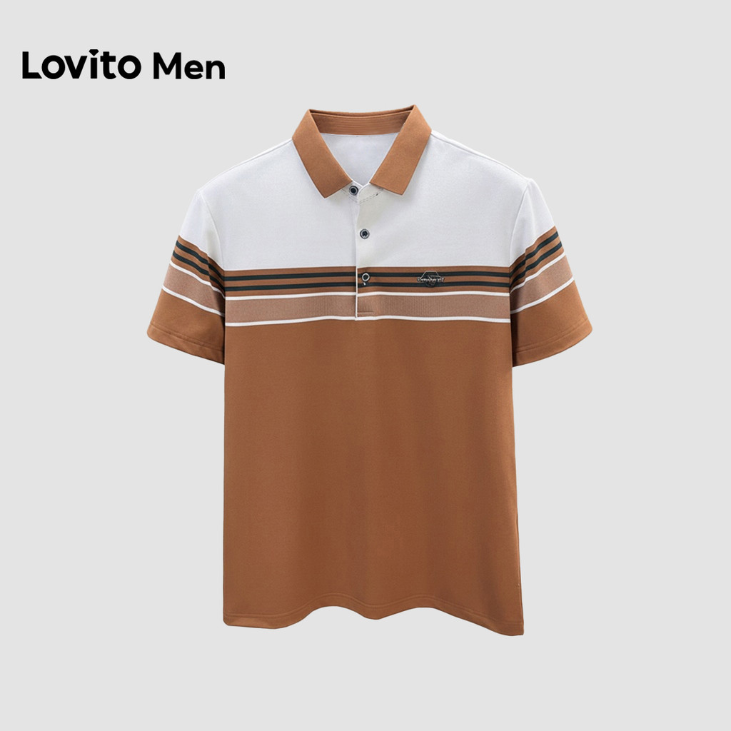 Lovito Men Camisa Polo Casual Geométrica Botão Primavera/verão para Homens LNE138169