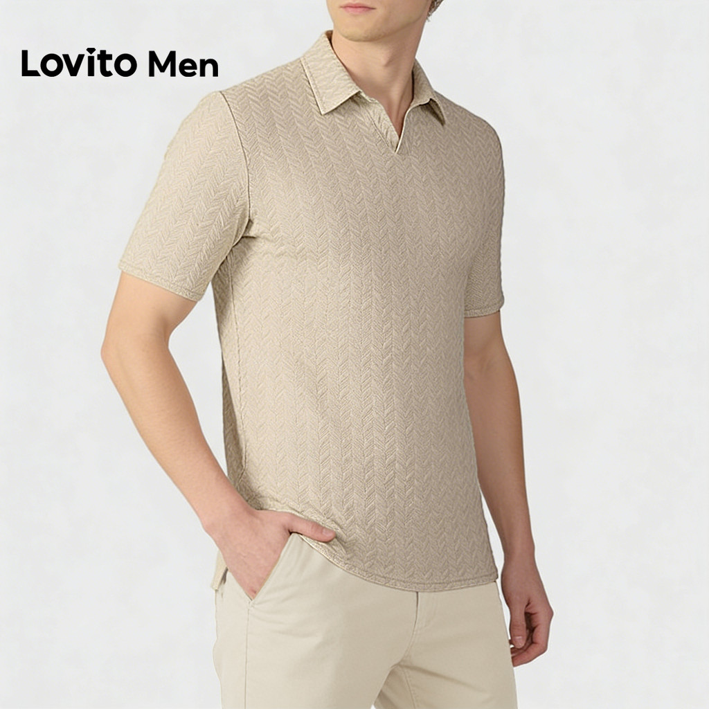 Lovito Men Camisa Polo Casual Jacquard Primavera/verão Polo Khaki para Homens LNE138164