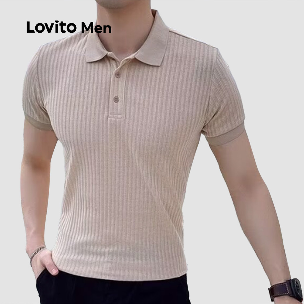 Lovito Men Camisa Polo Casual Plicated Primavera/verão Camisa Polo de Damasco para homens LNE114117