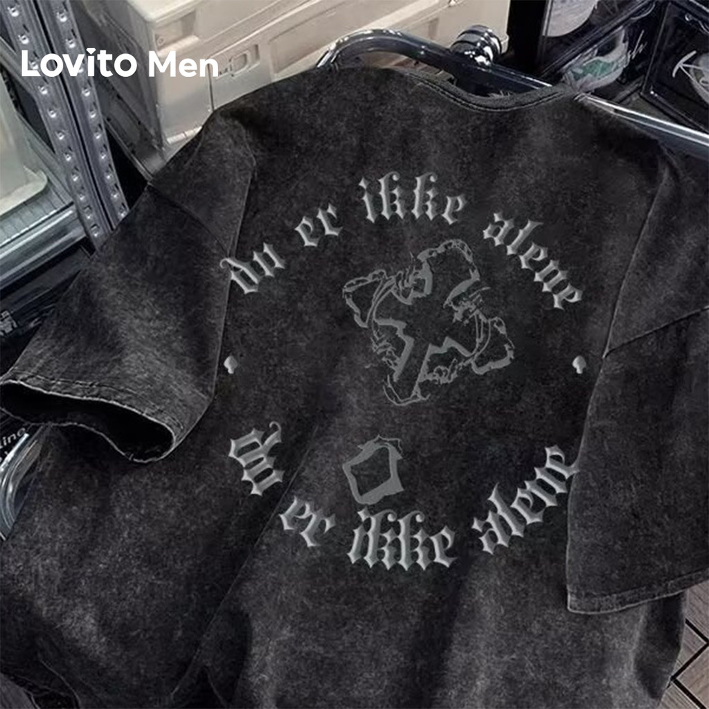 Lovito Men Camiseta Casual Cinza para Homens Primavera/Verão LNE127094
