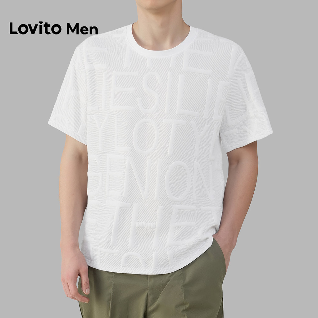 Lovito Men Camiseta Casual Jacquard Primavera/verão Branca para Homens L175ED023