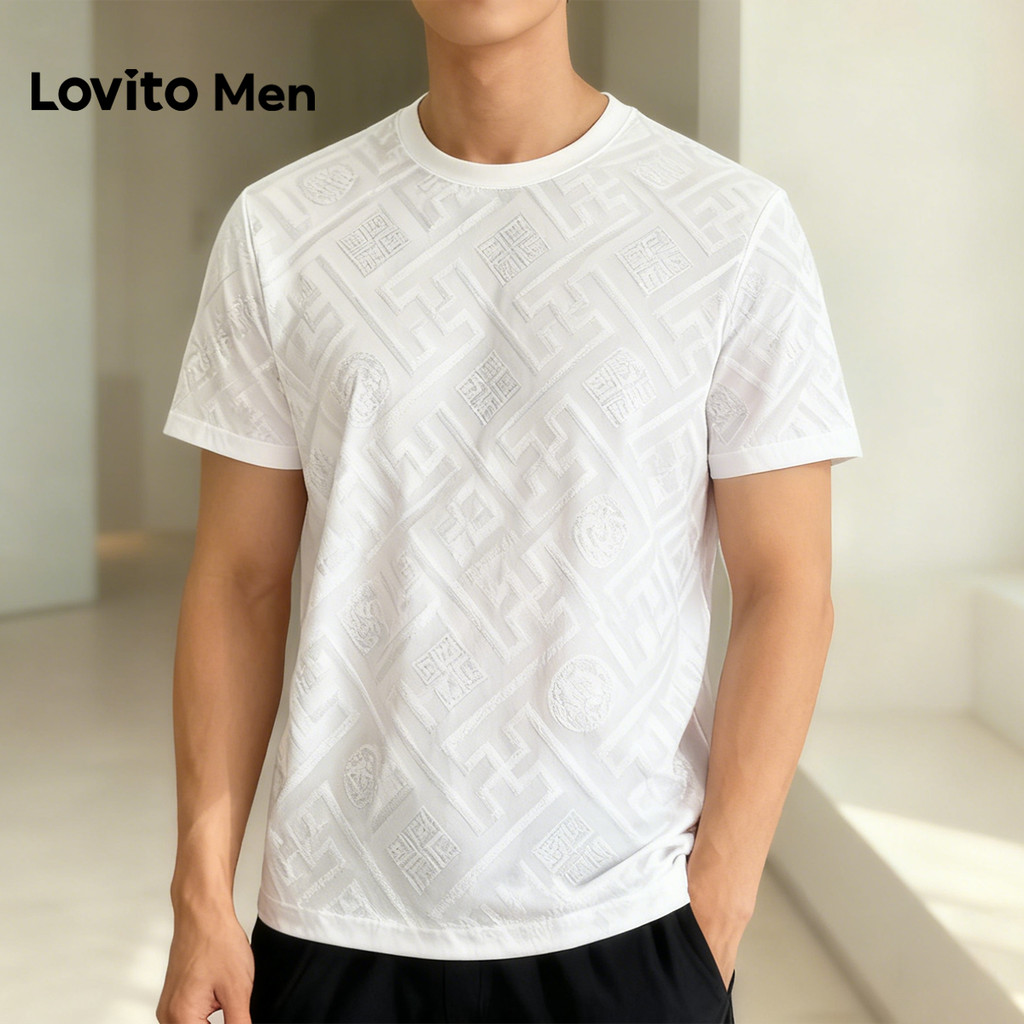 Lovito Men Camiseta Casual Jacquard Primavera/verão Branca para Homens LNE127155
