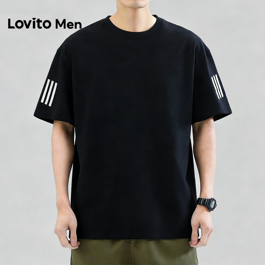 Lovito Men Camiseta Casual Primavera/verão Camiseta Preta para homens LNE142522