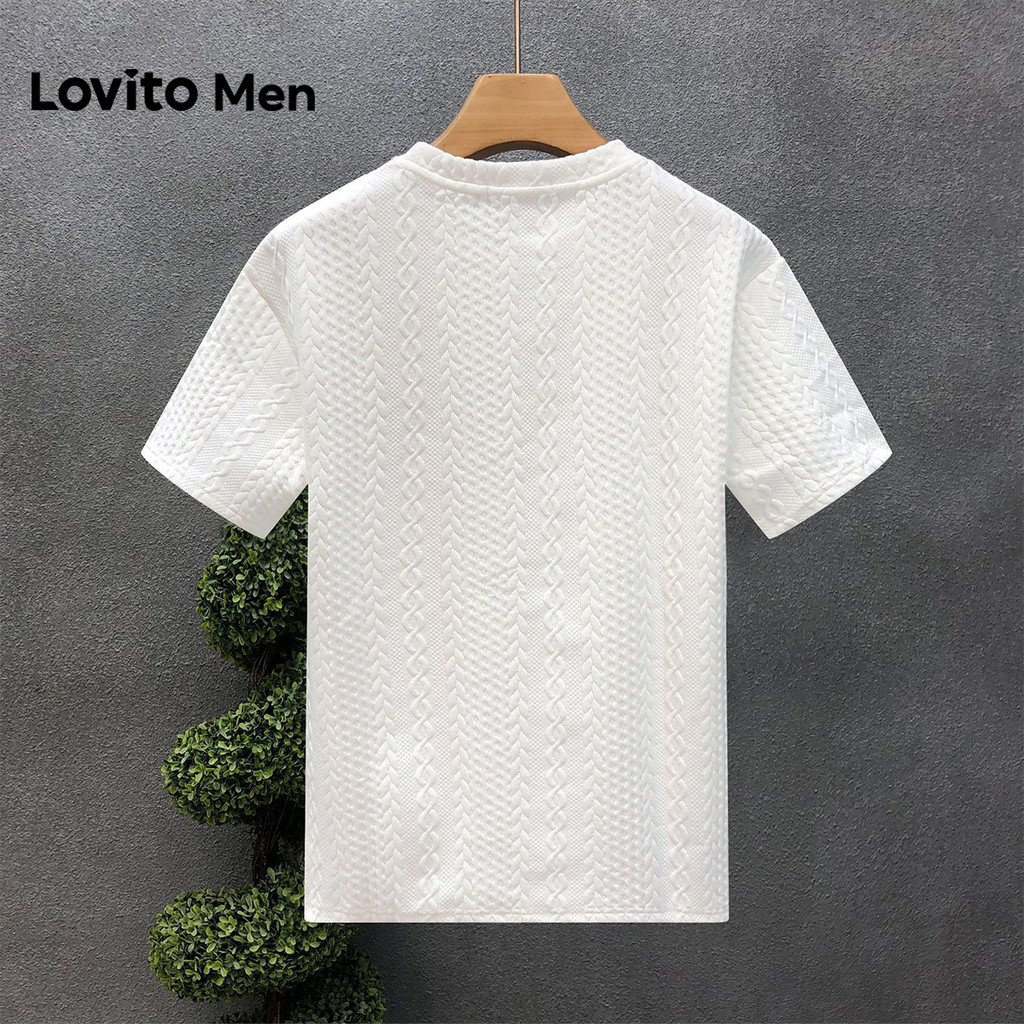 Lovito Men Casual Tshirt Jacquard Primavera/verão Branca para Homens LNE131125