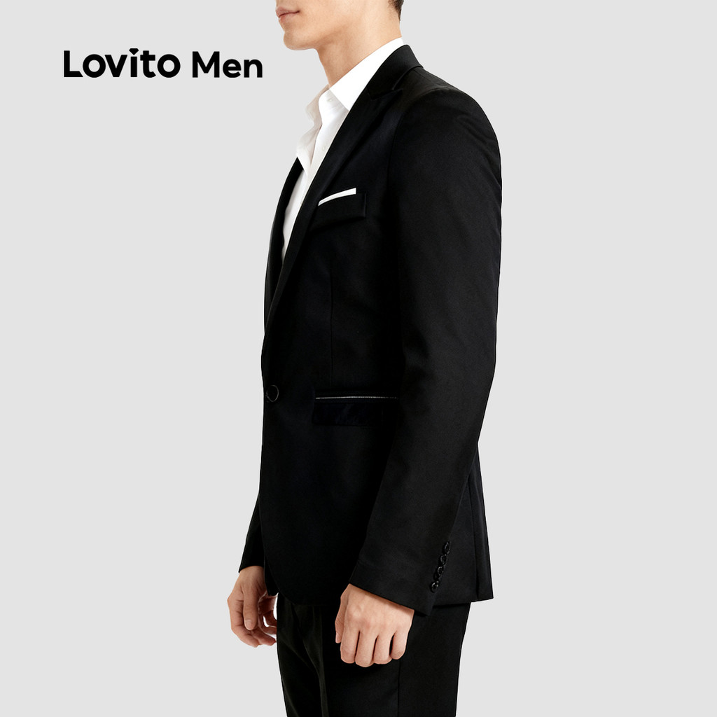 Lovito Men Jaqueta Elegante Festas Exquira Bloco de Cores Jaqueta Preta para Homens de Todas As Estações LNE122171