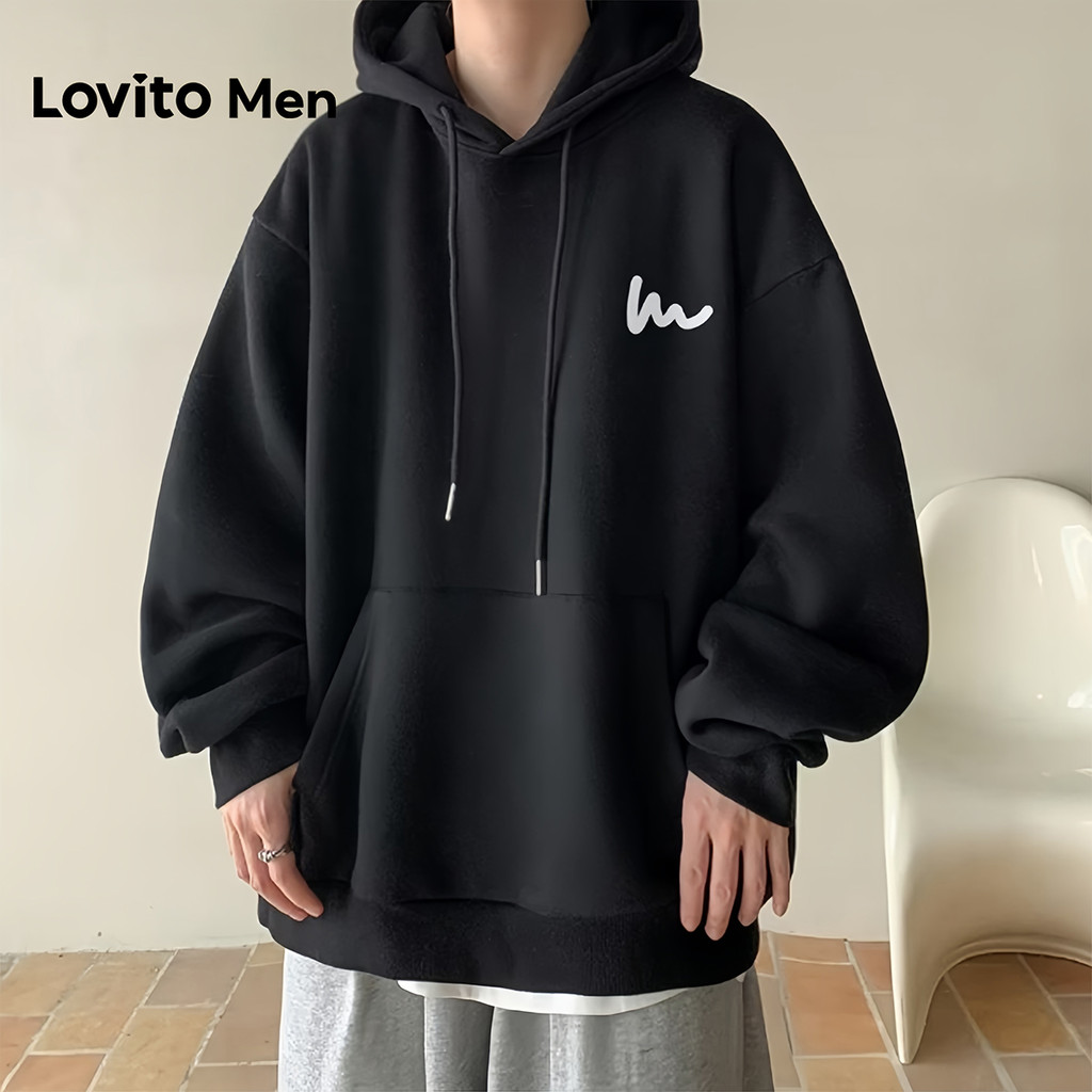 Lovito Men Moletom Casual com Cordão e Bolso Outono/inverno Preto para Homens LNE127163