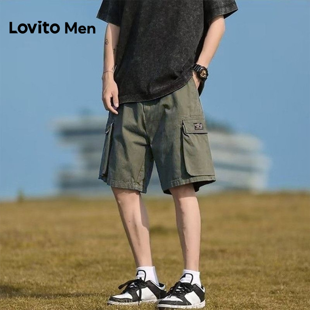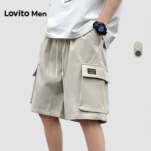 Lovito Men Shorts Casuais Bolso Primavera/verão Shorts Cáqui para Homens LNE131088