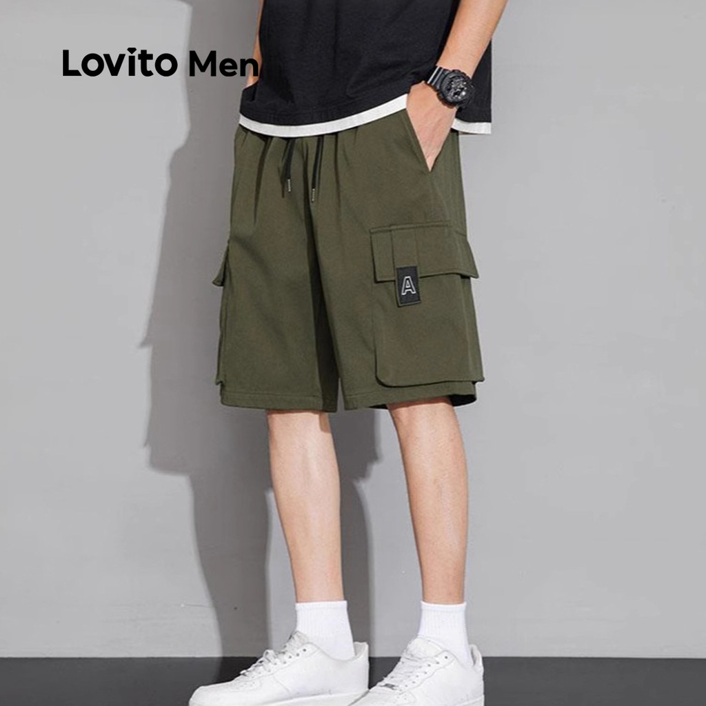 Lovito Men Shorts Casuais com Bolso Primavera/verão Verde Militar para Homens LNE122150