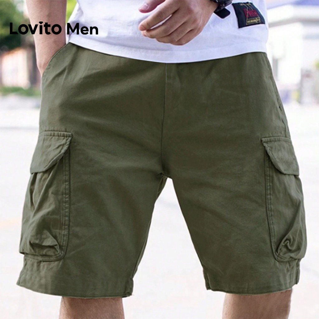 Lovito Men Shorts Casuais com Cordão Primavera/verão Shorts Army Green para Homens L163ED023