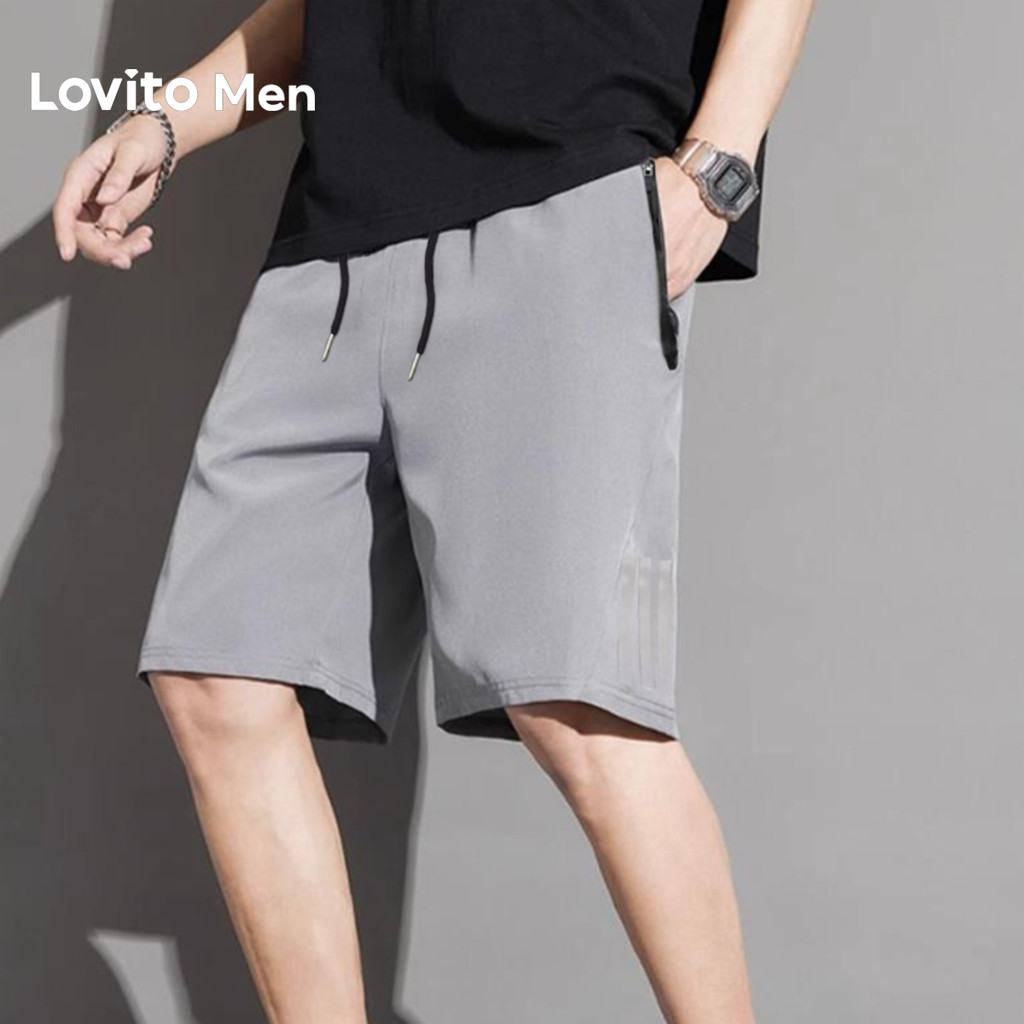 Lovito Men Shorts Casuais com Listra Lateral e Zíper Cinza para Primavera/verão para Homens LNE138137