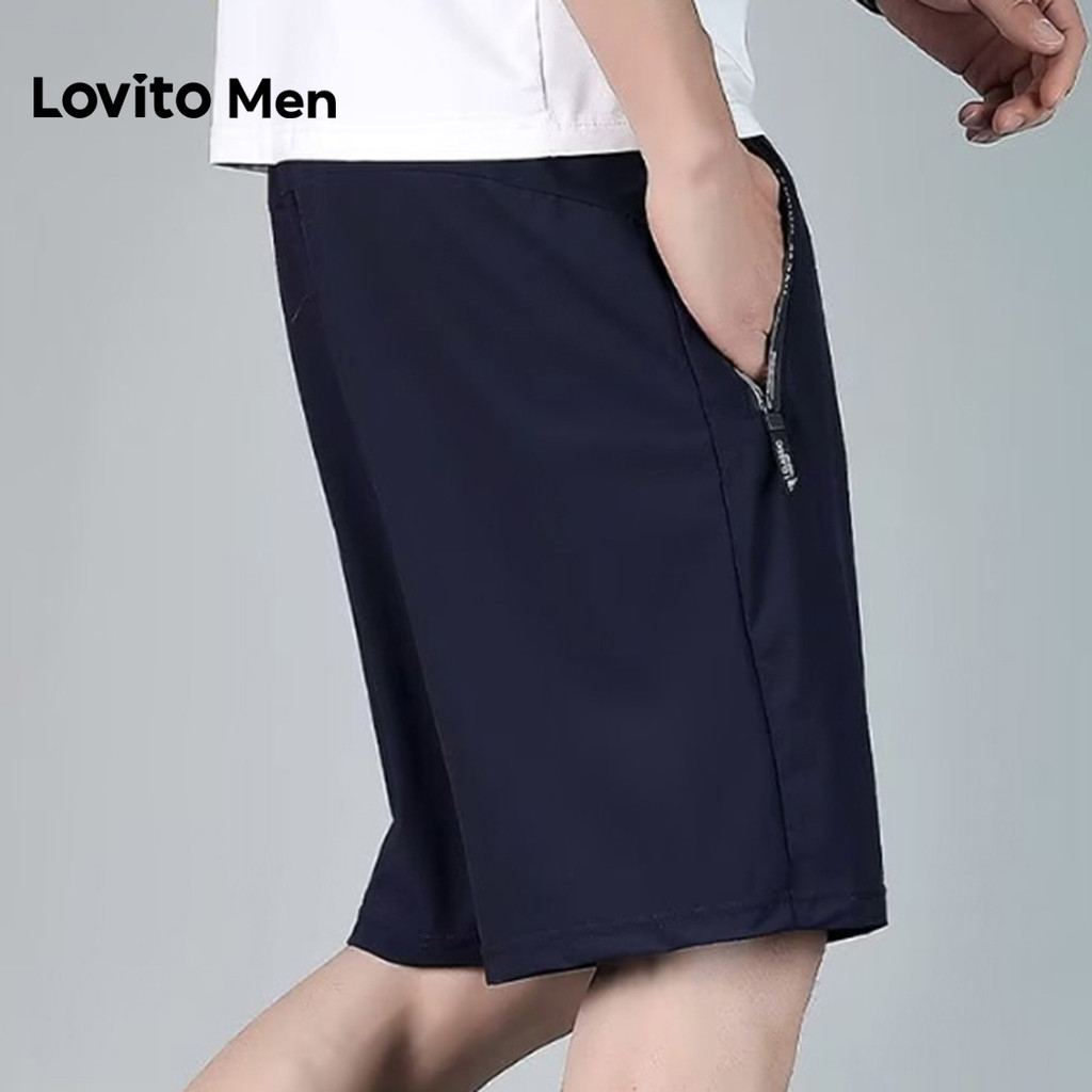 Lovito Men Shorts Casuais com Zíper para Primavera/verão Shorts Pretos para Homens LNE127104