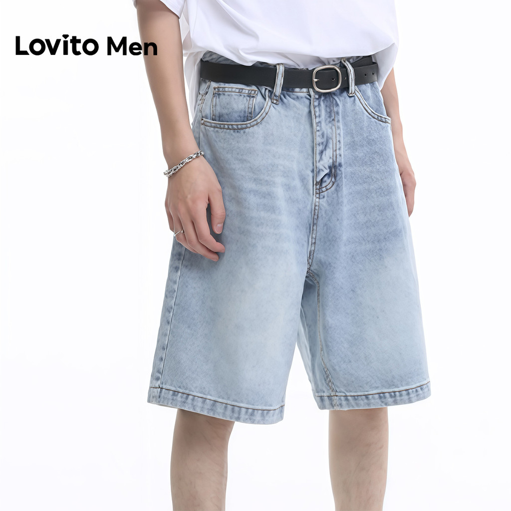 Lovito Men Shorts de Ganga Casuais com Bolso e Zíper Shorts de Ganga Azul Claro para a primavera/verão LNE127114