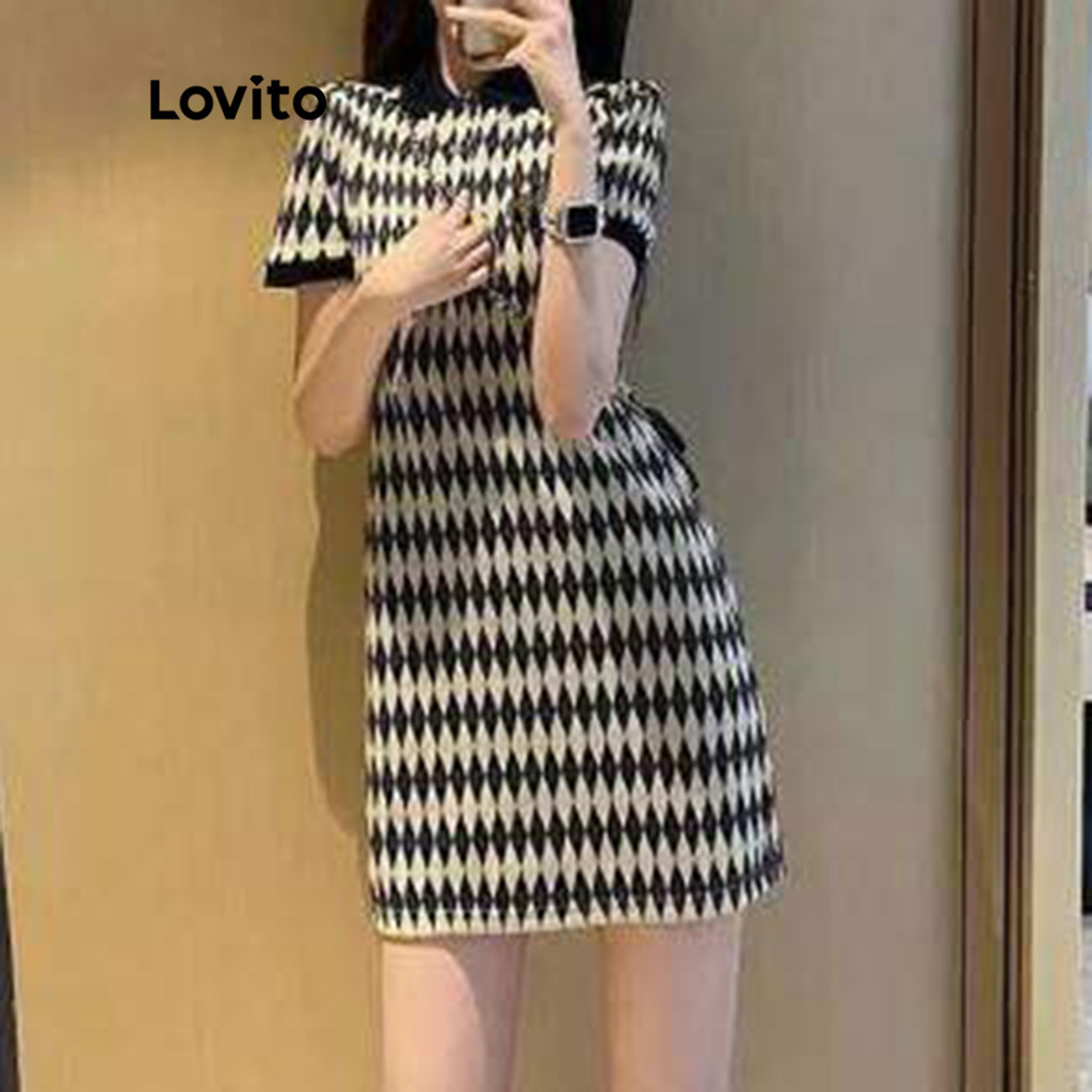 Lovito Minivestido Feminino Casual Argyle Com Decote Redondo E Decote Redondo LNA06010 (Multicolorido)