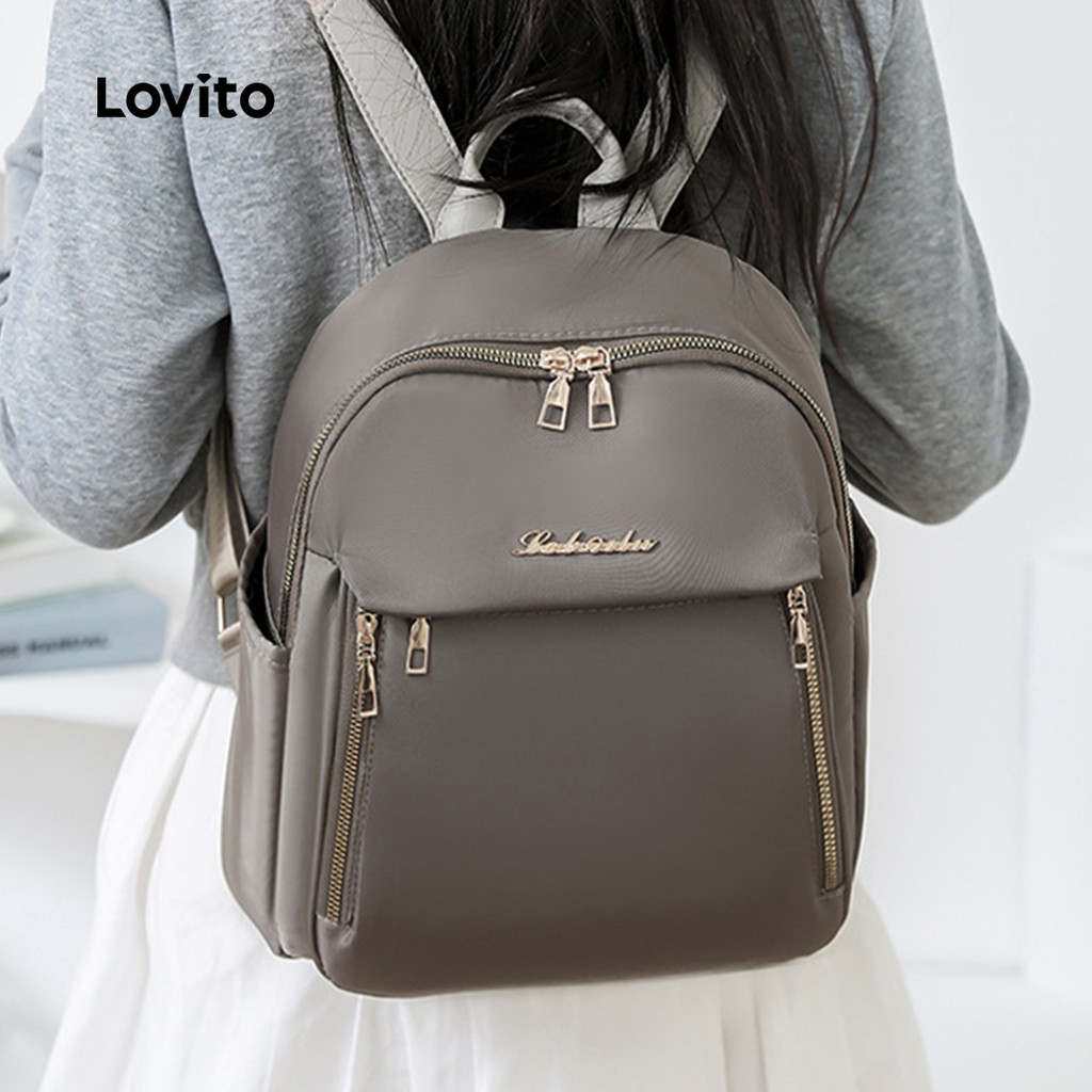 Lovito Mochila Casual Lisa Multifuncional Grossa Com Vários Zíperes E Compartimentos Para Mulheres LFA82057