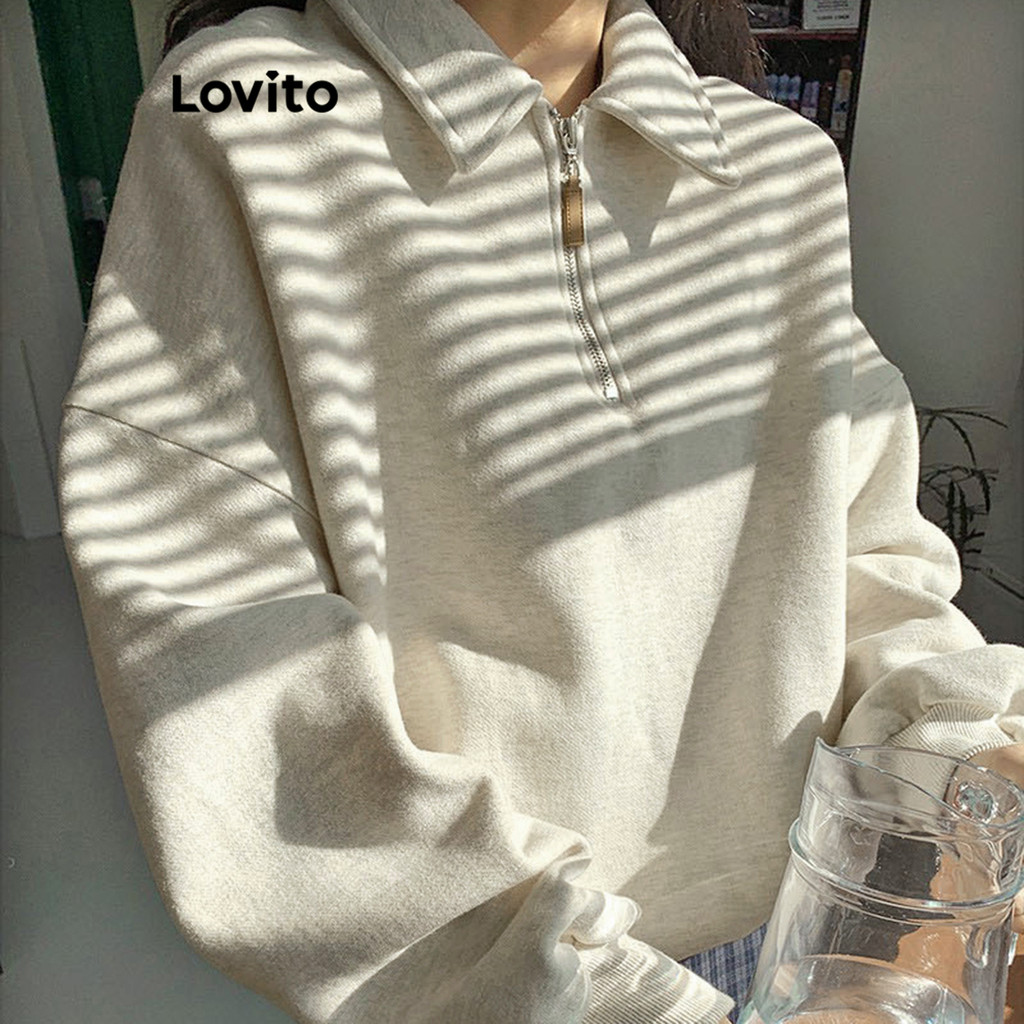 Lovito Moletom Feminino Casual Zíper Liso Primavera/Verão L102AD477