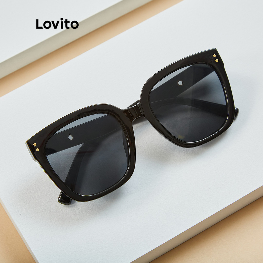 Lovito Óculos de Sol Casual Lisos Clássicos Oversize com Caixa L17M184 (Preto)