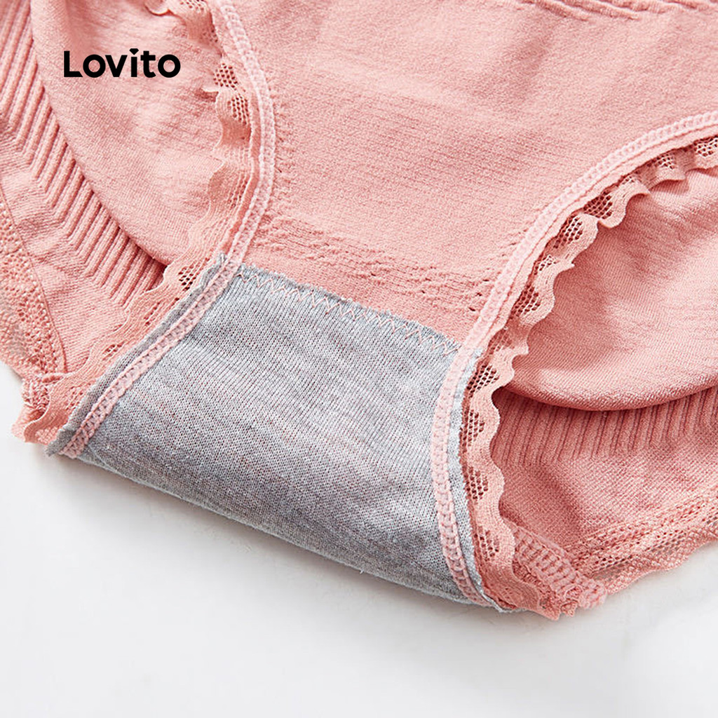 Lovito Pack com 4 Calcinhas Tipo Colmeia Cintura Média, Respirável e Levantamento de Bumbum LNA15003