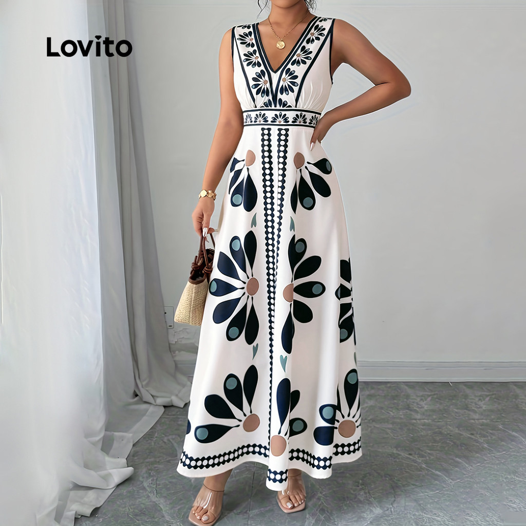Lovito Padrão de Vestido Boho com Zíper Vestido Primavera/verão para Mulheres LBL32024