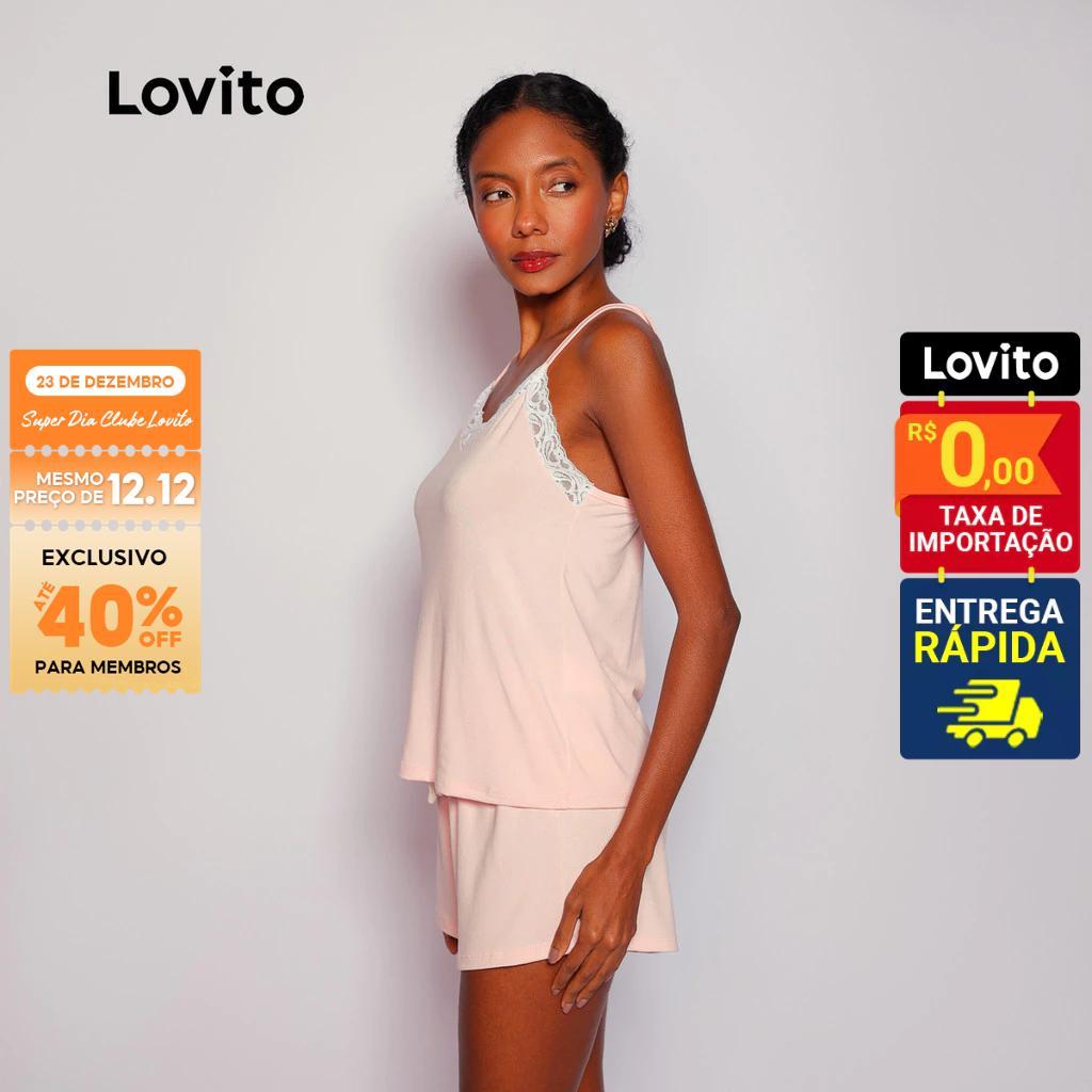 ✅DESTAQUES -❤️Renda -❤️Cordão -❤️Toque macio ✅DESCRIÇÕES Estampa: Lisa Estilo: Bonito Tamanho Plus: Composição: 96% Poliéster 4% Elastano Tipo de Caimento: Regular Transparência: Sem Elasticidade: Leve Região de Origem: Brasil ✅O PACOTE INCLUI 1 Conjunto ✅INTRODUÇÃO À LOVITO A Lovito é uma marca emergente que acredita no poder feminino, comprometida em oferecer opções de roupas elegantes e acessíveis para diferentes estilos, necessidades e identidades. Acreditamos que a moda deve ser divertida, libertadora e fazer você se sentir bem. Afinal, o melhor acessório para qualquer look é a autoconfiança. ✅NOTAS DE COMPRA Compare suas medidas com nossa tabela disponível no site. Lembre-se de que, por serem feitas manualmente, as medidas podem variar de 1 a 2 cm. As cores dos produtos também podem ter pequenas diferenças em relação às fotos, dependendo da iluminação e das configurações do seu dispositivo. Siga nossa loja e conheça novos itens e as melhores ofertas para você!! Se você tiver alguma dúvida, converse conosco e responderemos o mais rápido possível.😊