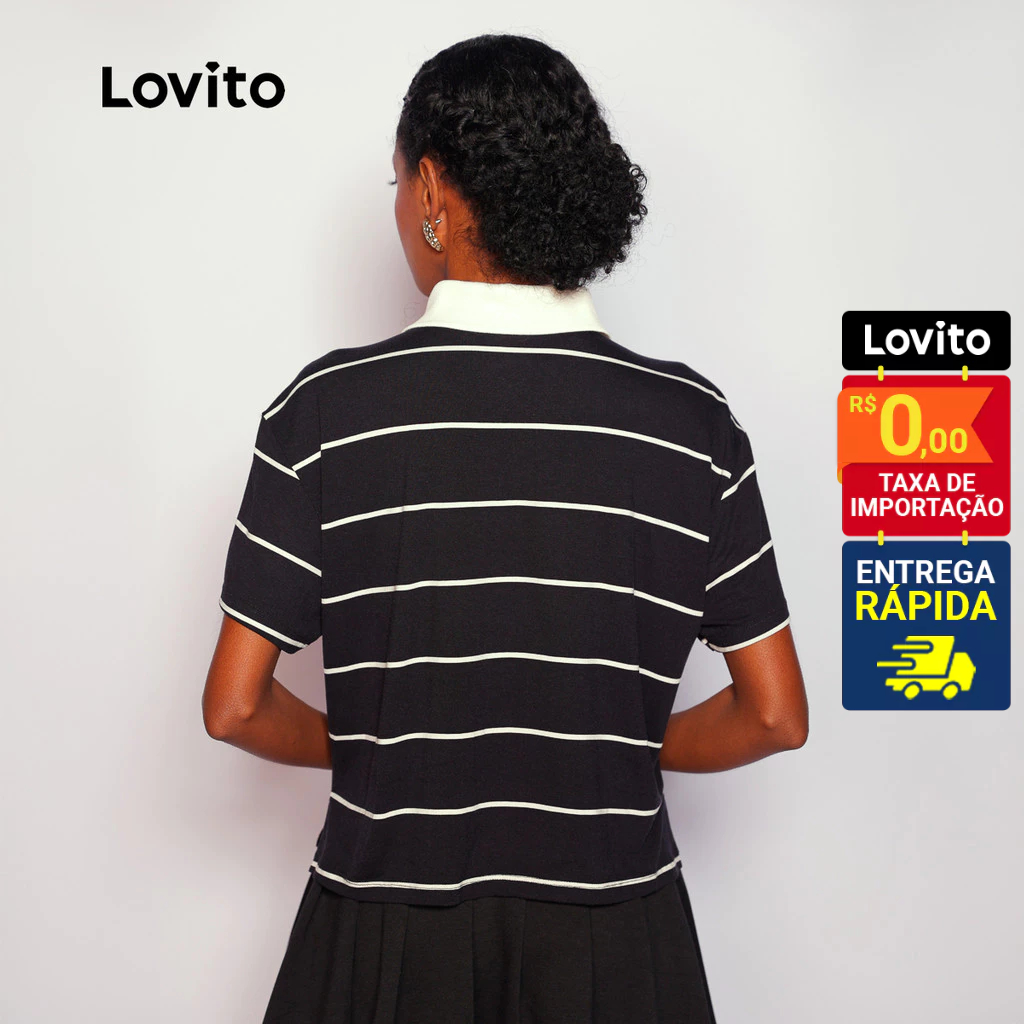 Lovito Polo Listrada Gola Contrastante Feminina Moda LB400BRL429