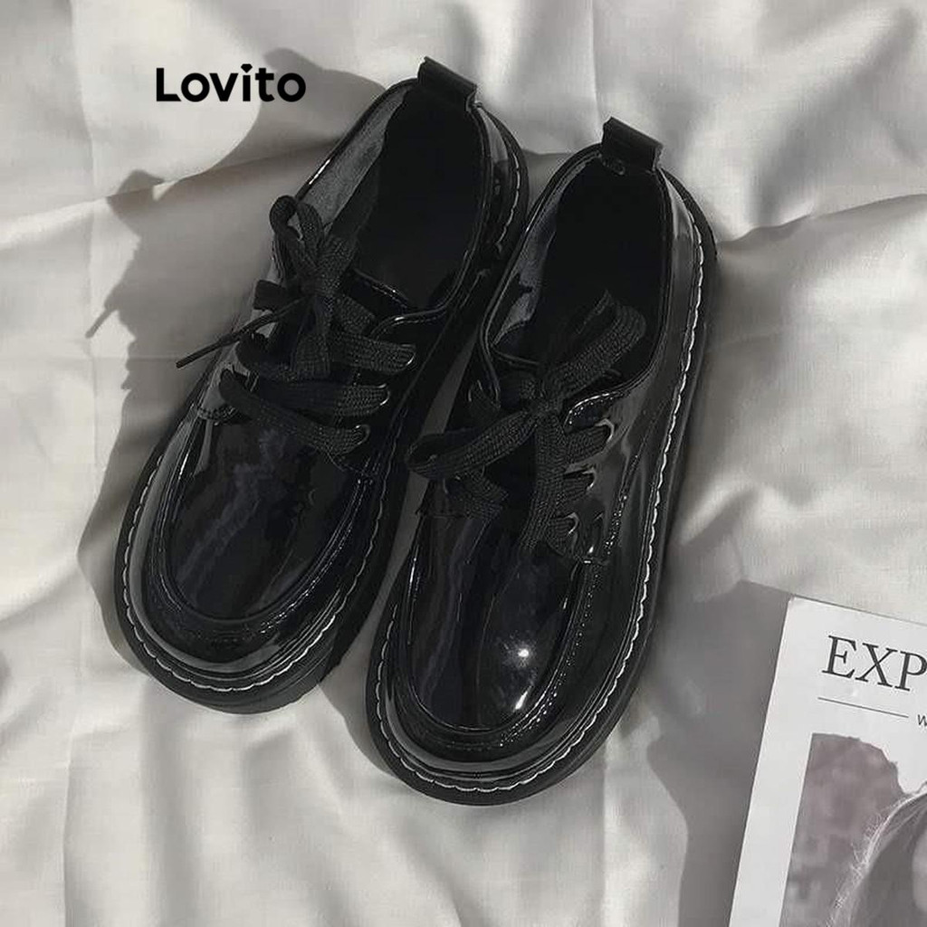 Lovito Preppy Plain Estilo Britânico Retro Japonês Jk Lace Up Loafers Daily Wear Mary Jane para Mulheres LFA58335