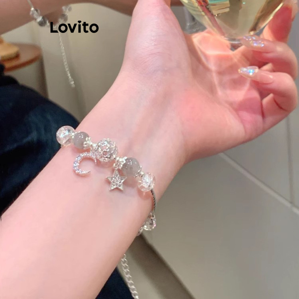 Lovito Pulseira Feminina Casual Estrela Lisa com Strass LFA06110 (Prata)