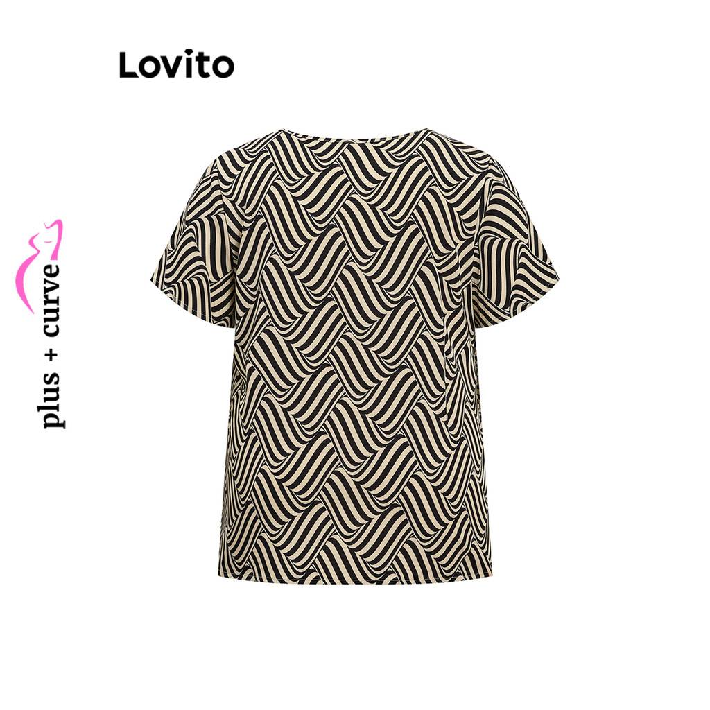 Lovito Refine Blusa Geométrica Elegante para Mulheres Plus Size LBL16674