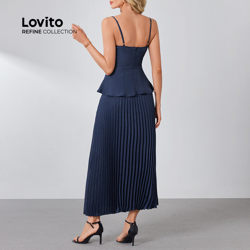 (Lovito Refine) Blusas ou Calças Elegantes com Pregas Botões para a primavera/verão LR18L053