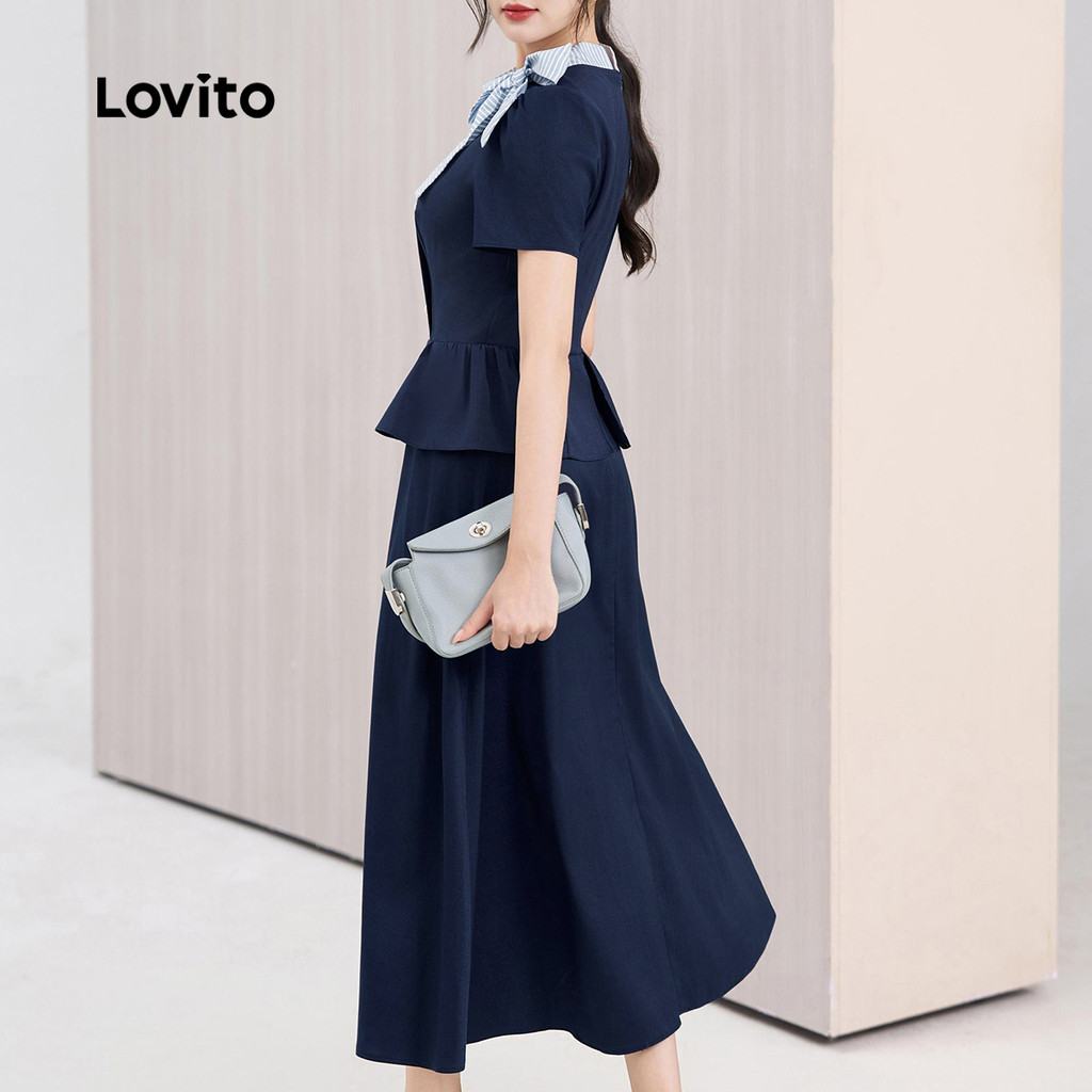 Lovito Refine Blusas ou Saias Sofisticadas com Assimétrica em Azul Marinho para Primavera/Verão L172ED537