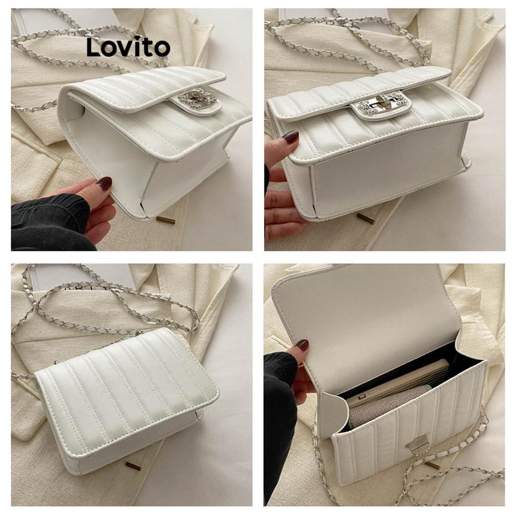 Lovito Refine Bolsa de mão pequena com corrente metalizada para mulheres LFA56081