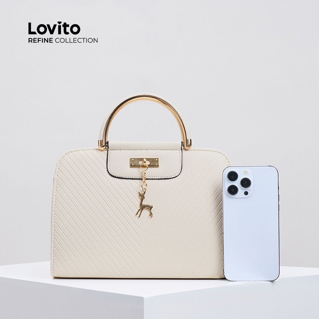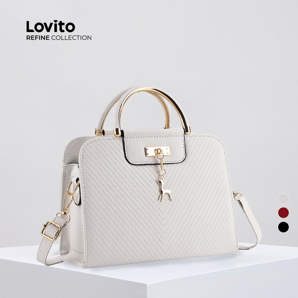 (Lovito Refine) Bolsa de ombro pequena Casual lisa em tecido de sarja de cor simples para mulheres LFAR11050