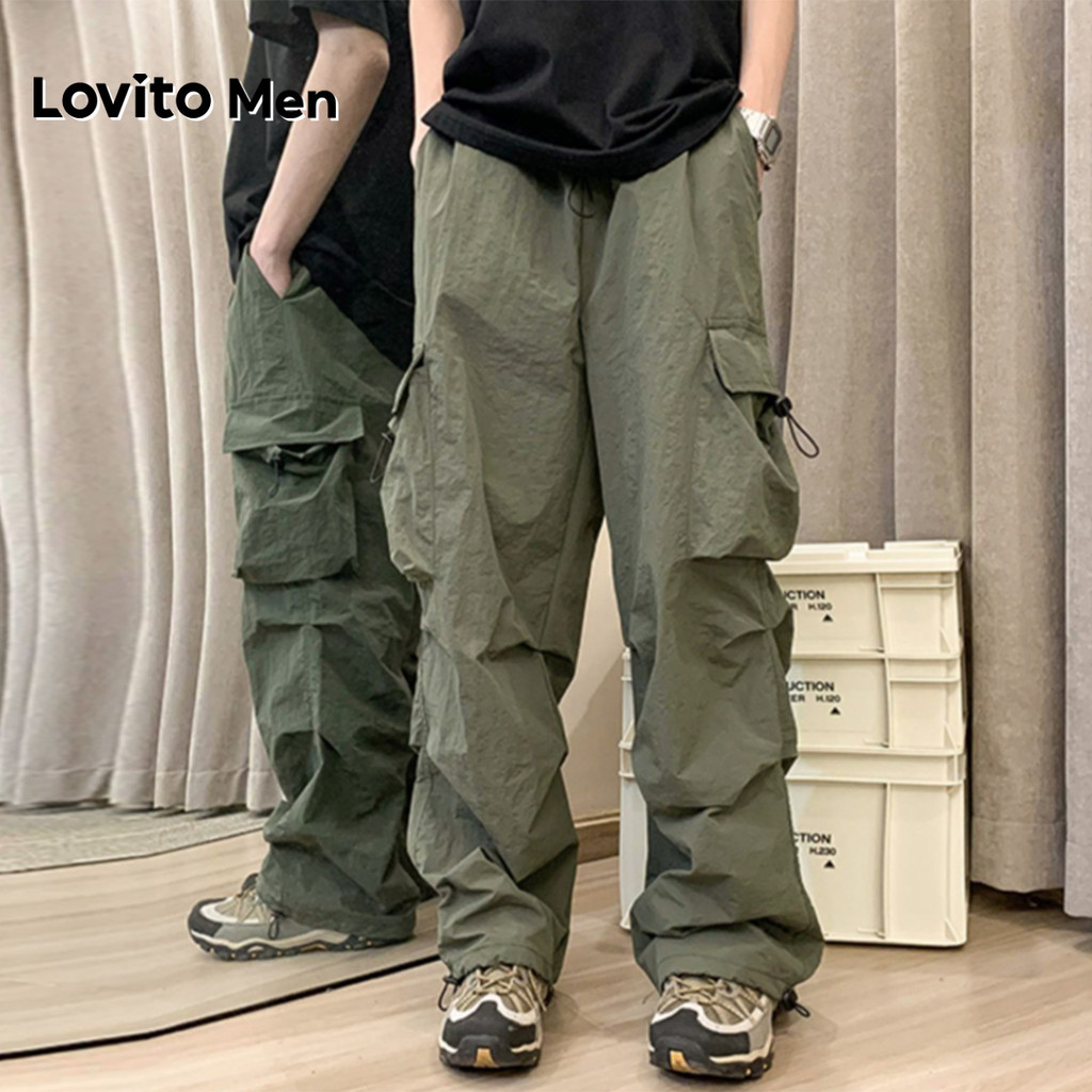 Lovito Refine Bolso Cargo Masculino Casual Verde Exército para Todas As Estações LNE127108