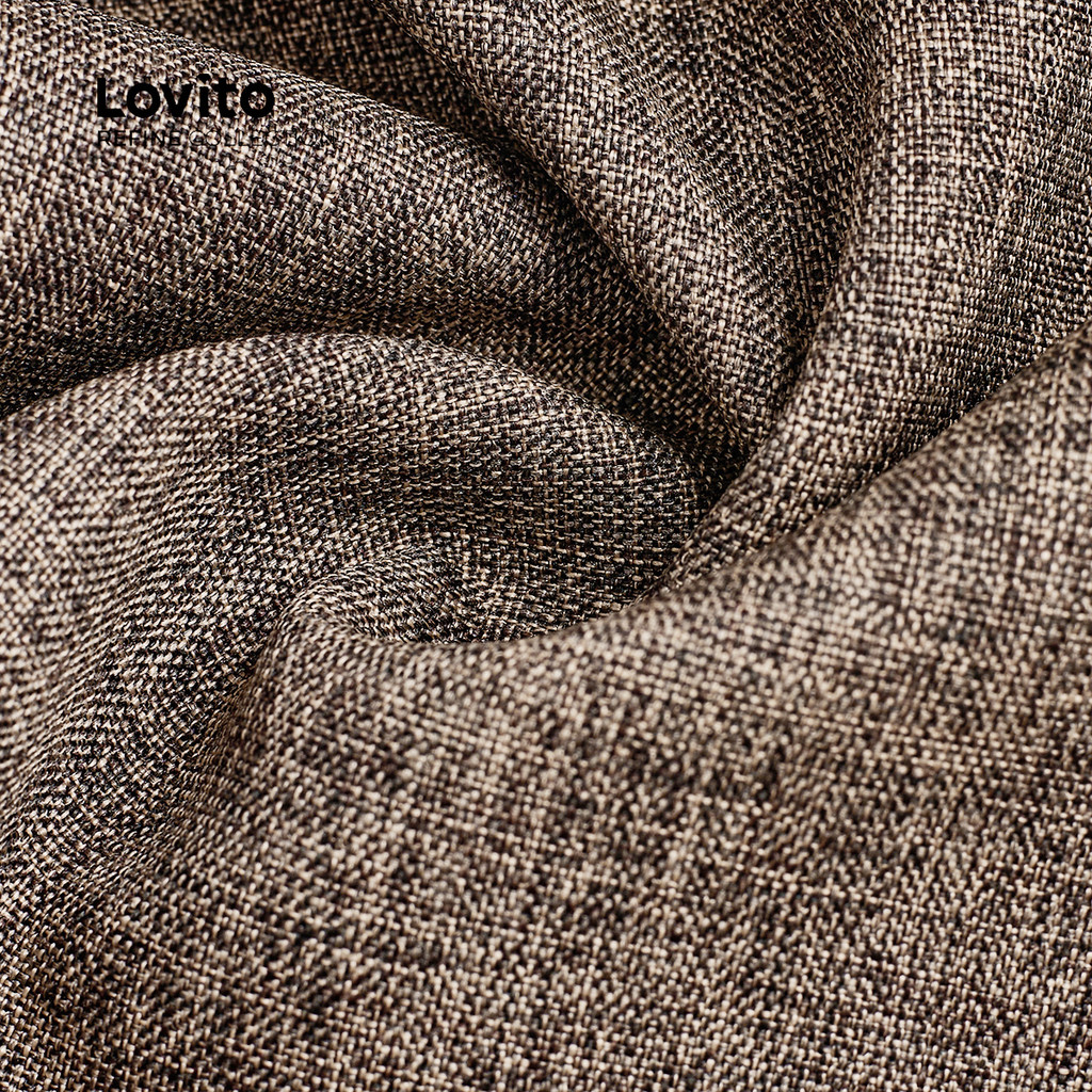 (Lovito Refine) Calças Elegantes com Cinto Botão e Bolso Calças de Primavera/verão em marrom LR21E225