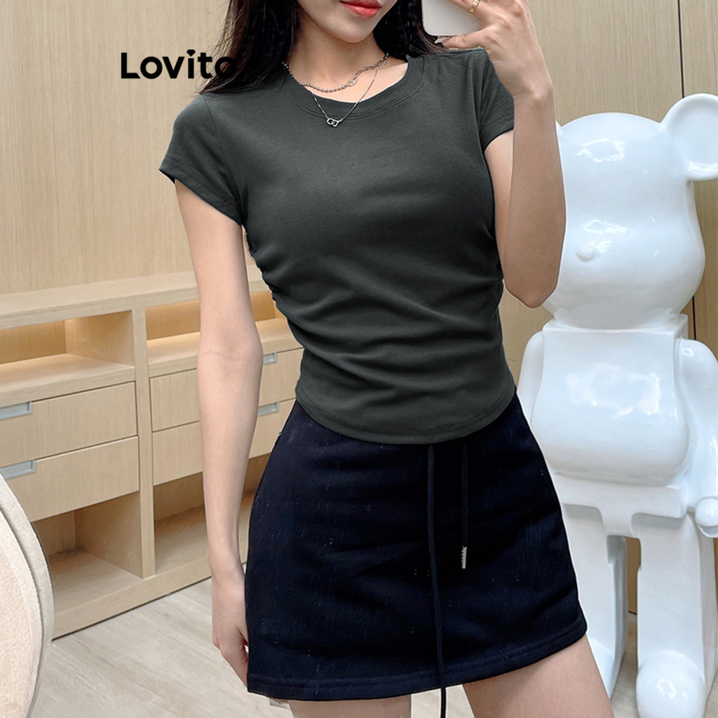 | Lovito Refine Camiseta Feminina Lisa Franzida Para Verão Primavera ... este produto | R$ 41,48 | 30% | 4.9/5 | — |