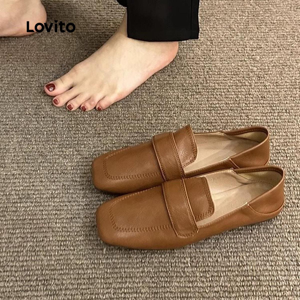 Lovito Refine Casual Retro Simples Couro Macio Confortável Balé Plano Feminino LFA75016