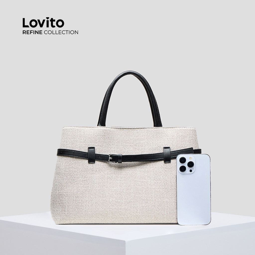 (Lovito Refine) Casual simples verão para férias viagem bolsa de ombro para mulheres LFAR11090
