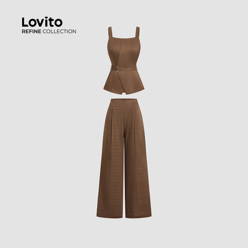 (Lovito Refine) Conjuntos de Calças Casuais com Pregas Zíper Primavera/verão Calças de café LR12E044